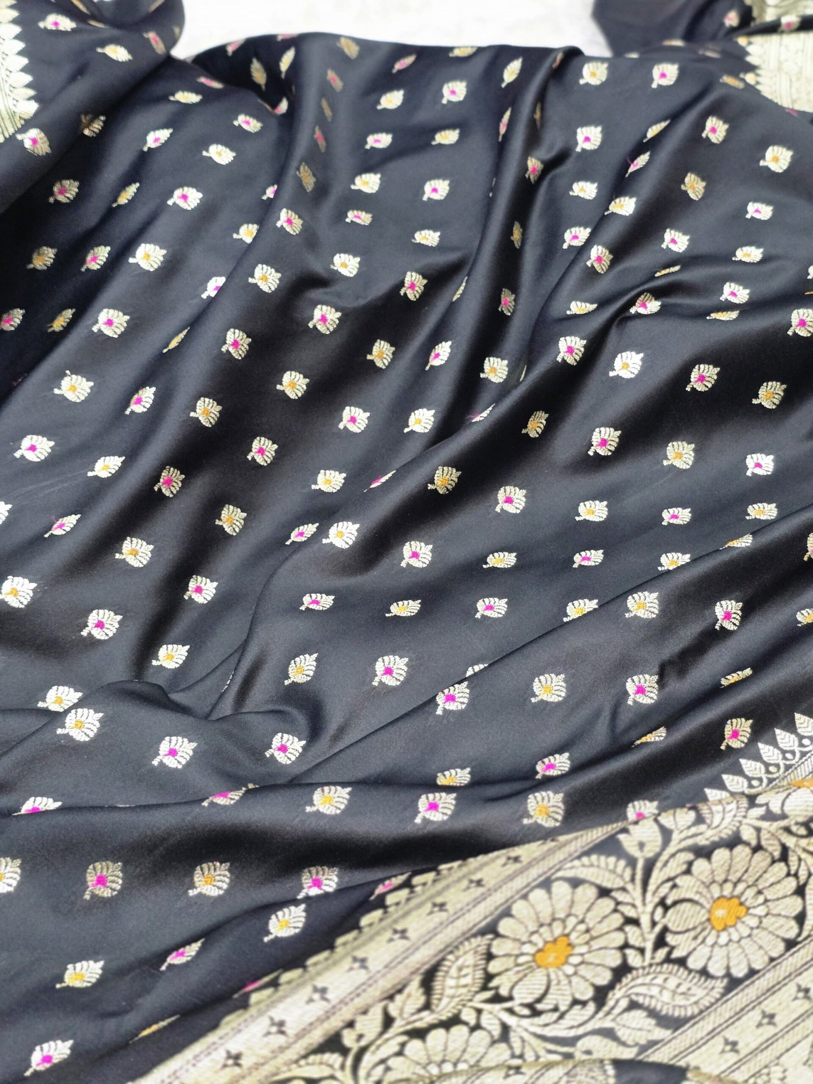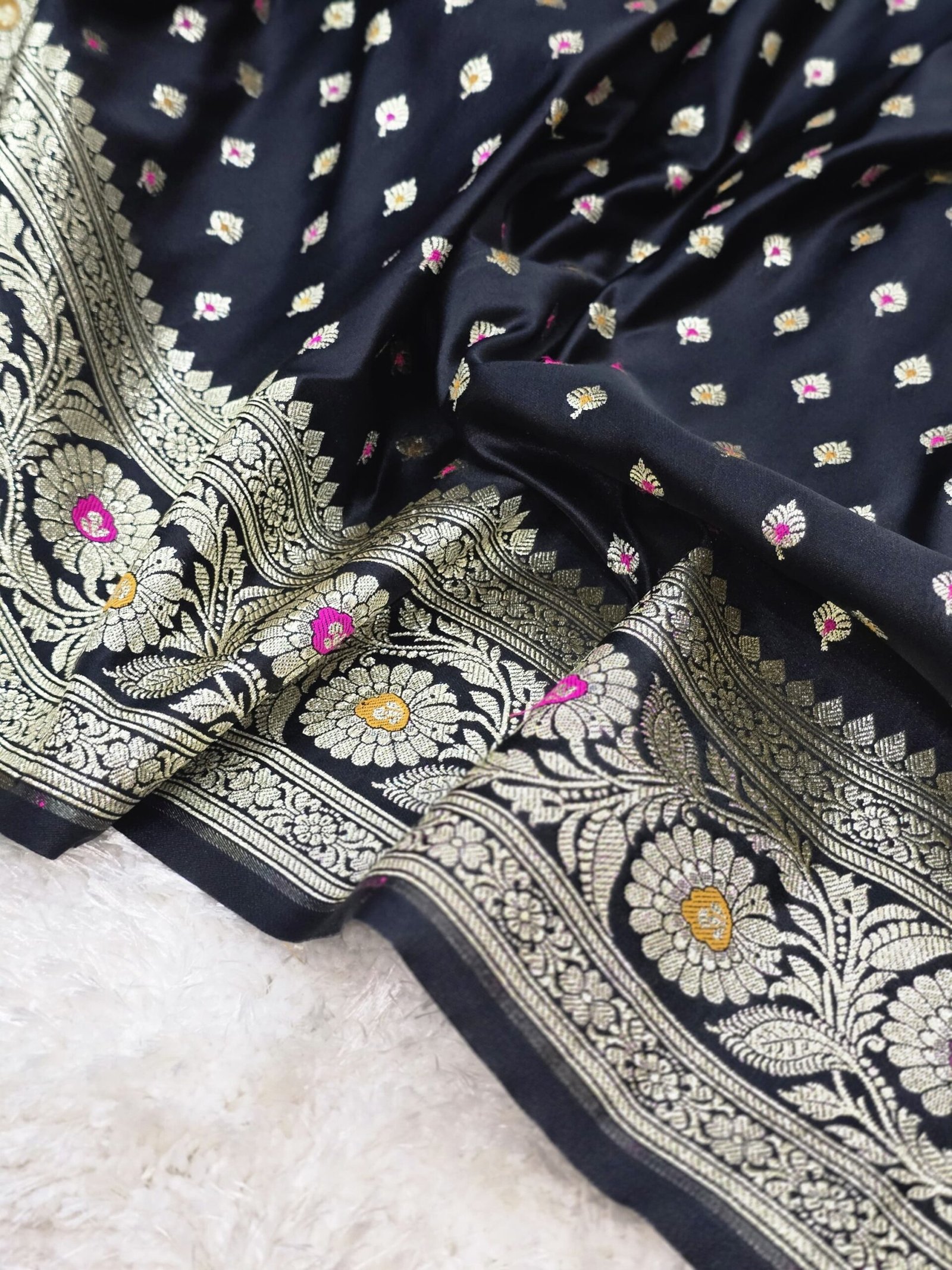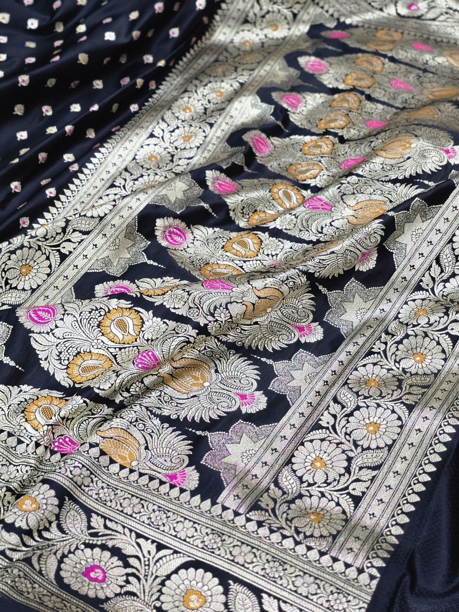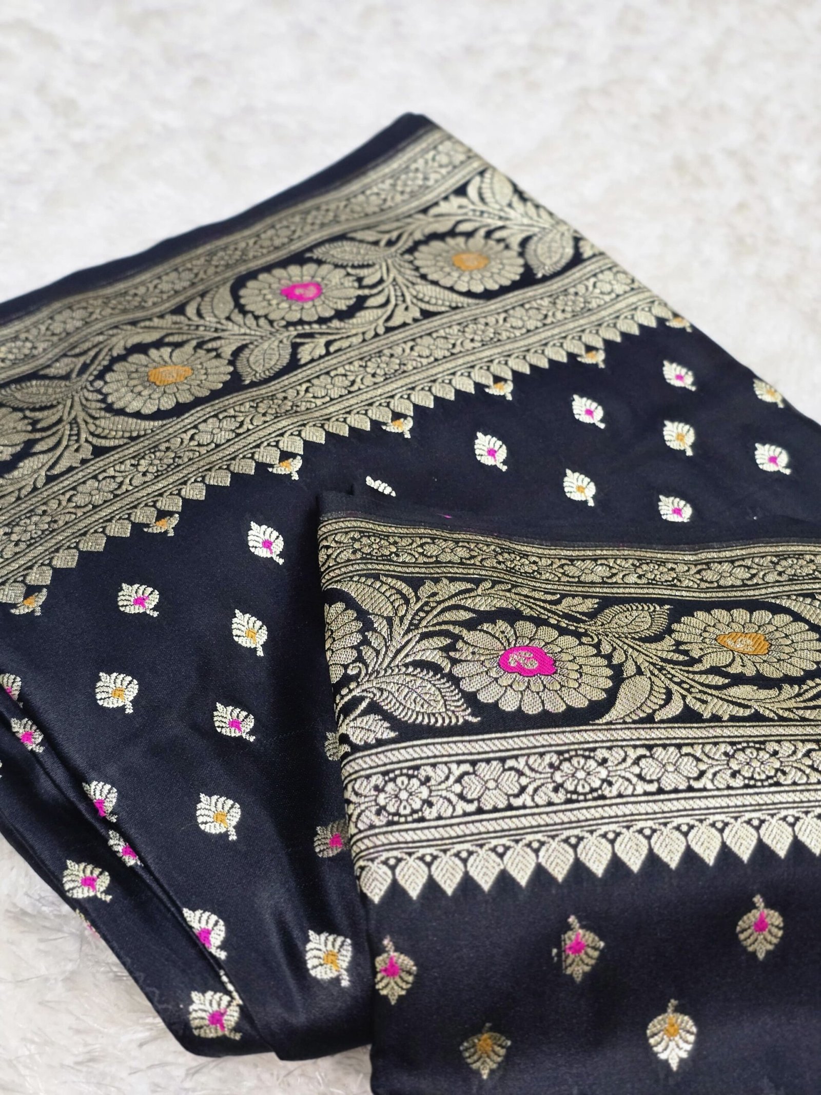 Mashroo Banarasi Silk | Rich Traditional Weave | Elegant Contrast Red Border | Soft Feel | Graceful Drape