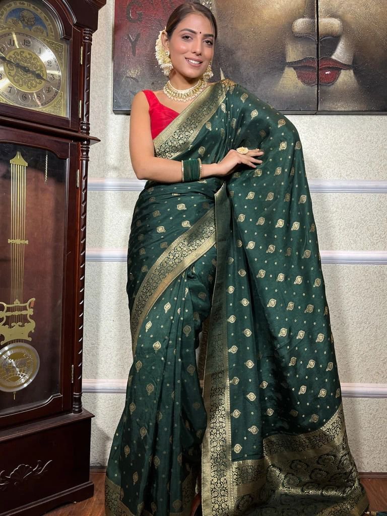 Banarasi Soft Silk Saree with Elegant Zari Motifs & Jacquard Weave