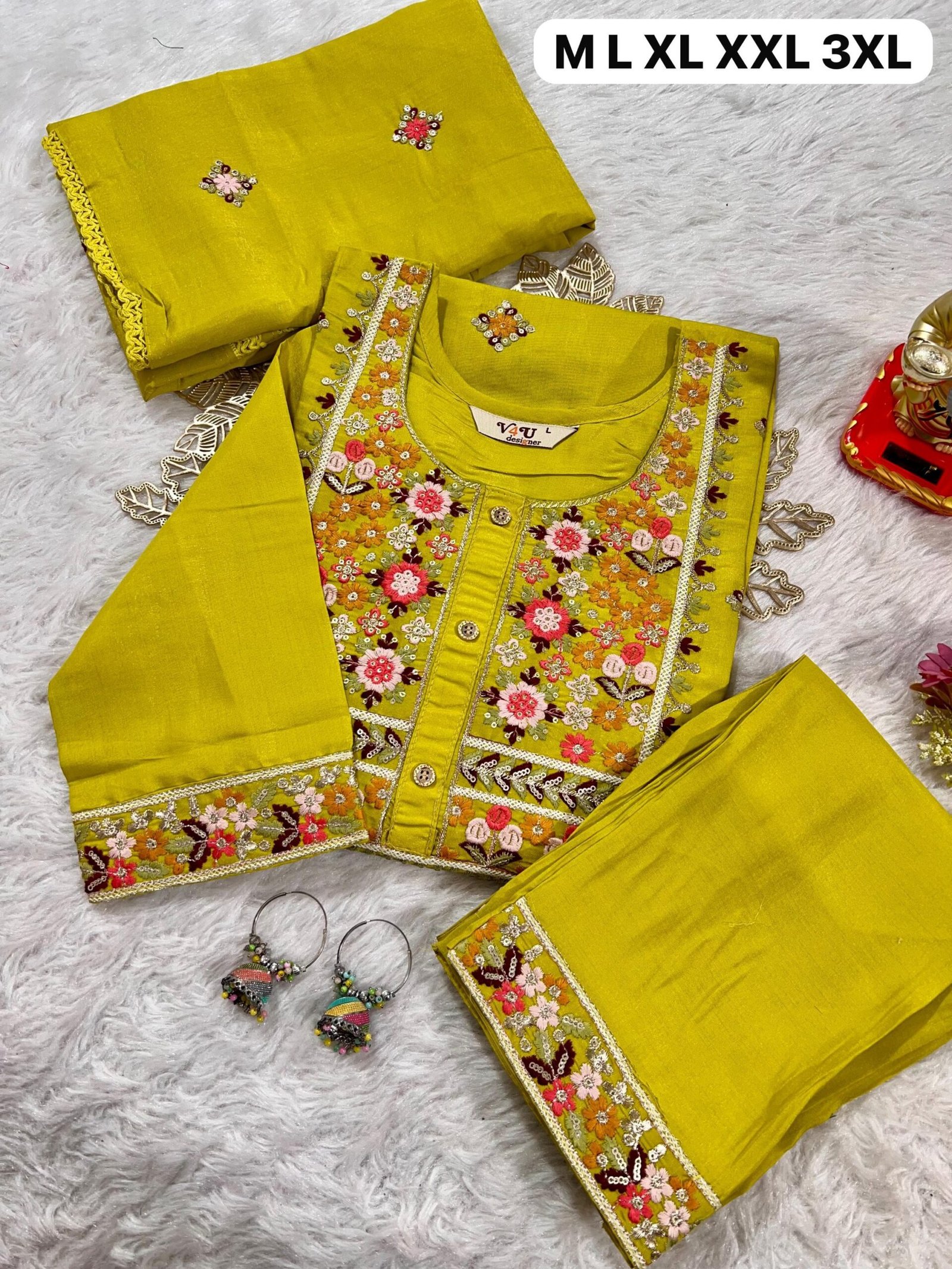 Hand Work Kurti Set | Heavy Viscose Fabric | Includes Dupatta & Pants | Sizes M to 3XL | Showroom Finish