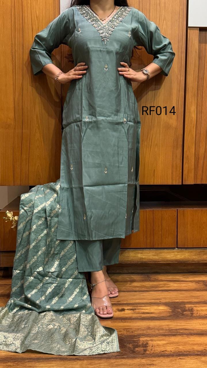 Elegant Roman Silk Suit Set with Heavy Banarasi Dupatta & Handwork