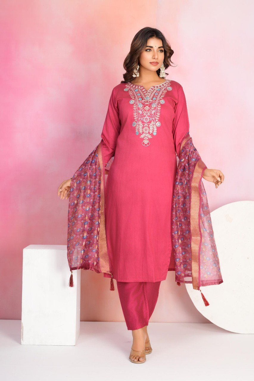 Premium Fox Georgette Embroidery Suit with Sequence Work – Heavy Net Dupatta