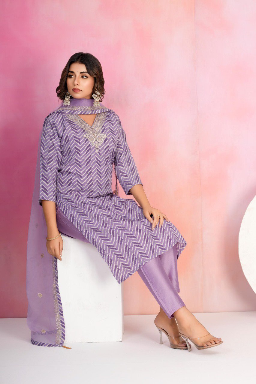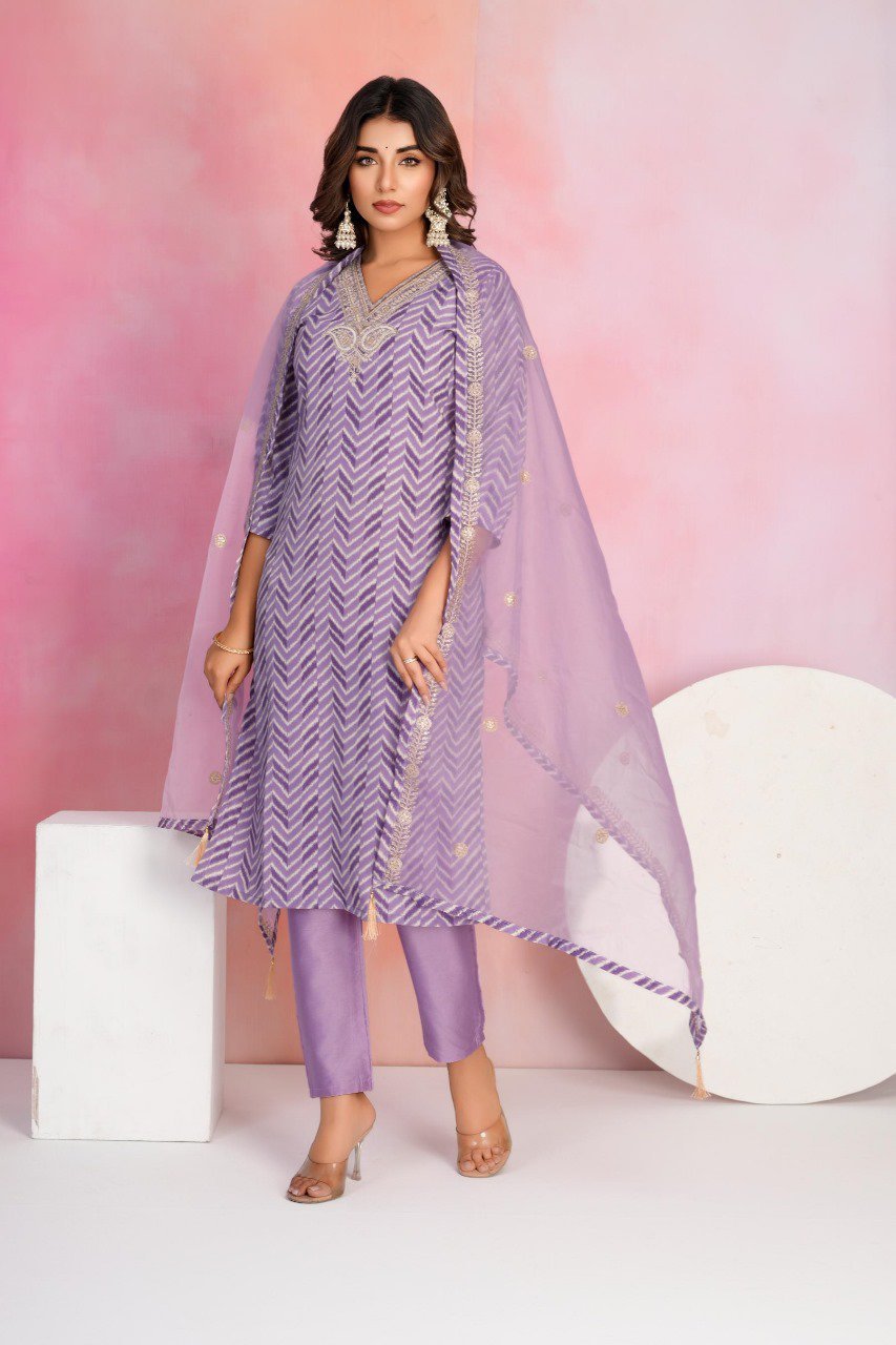 Shop ethnic festive wear viscose chanderi off white stitched suit with dupatta. Features embroidered work with silk/organza/jacquard dupatta. Perfect for festivals & occasions