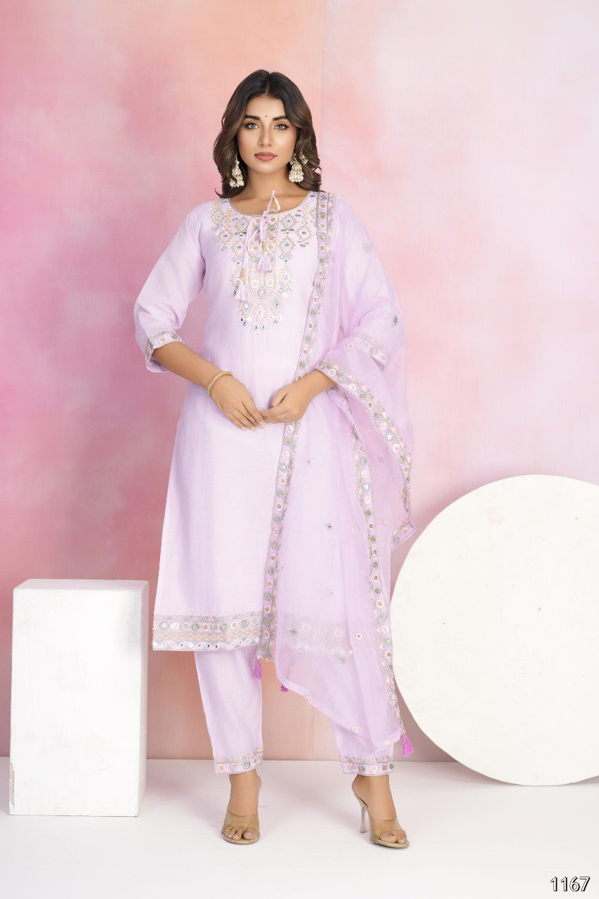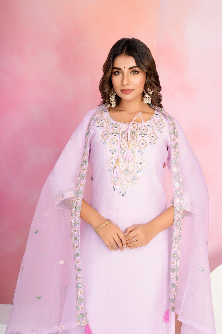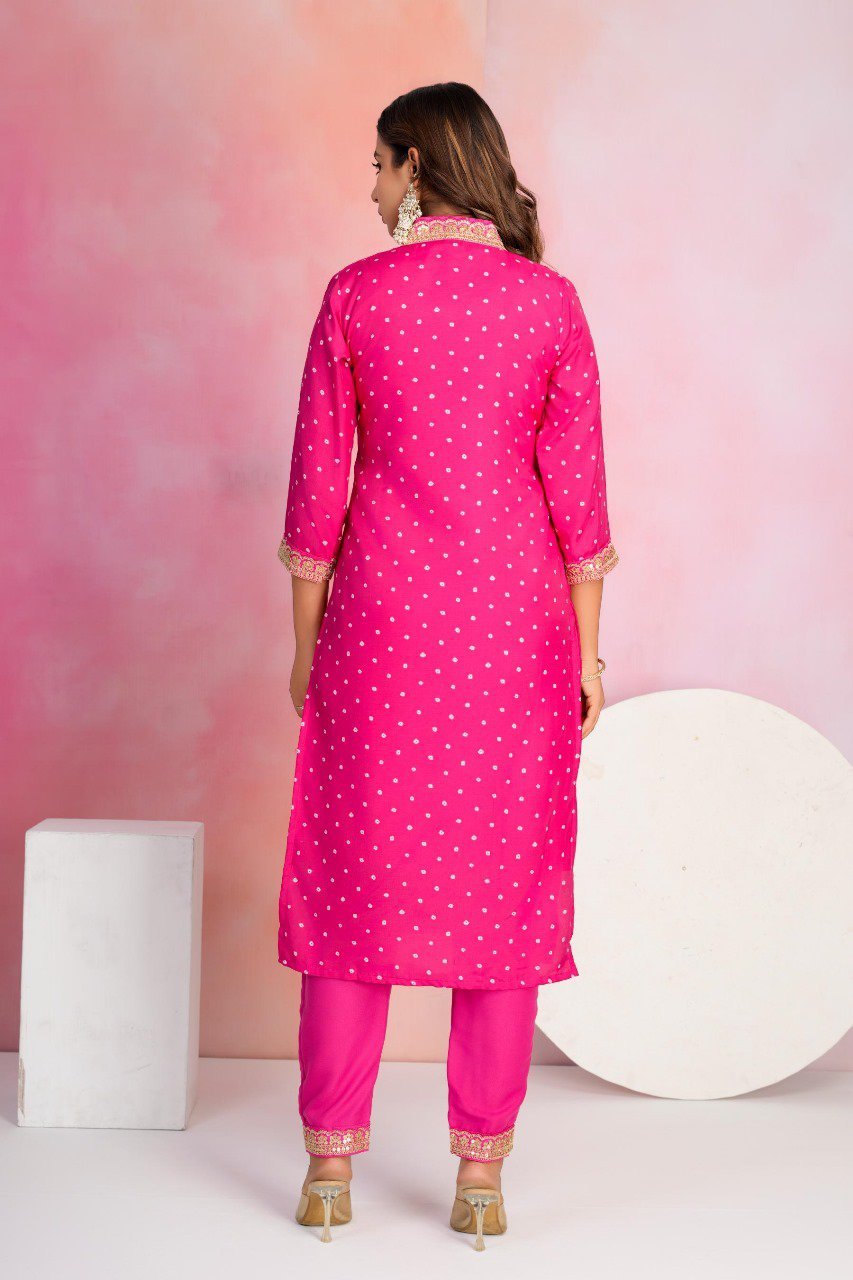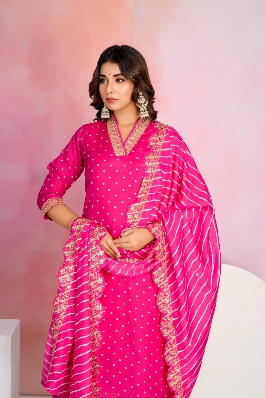 Ethnic Festive Wear Viscose Chanderi Pink Stitched Suit with Dupatta