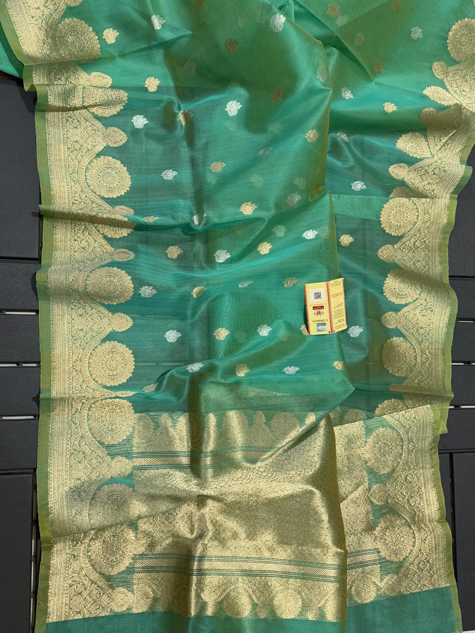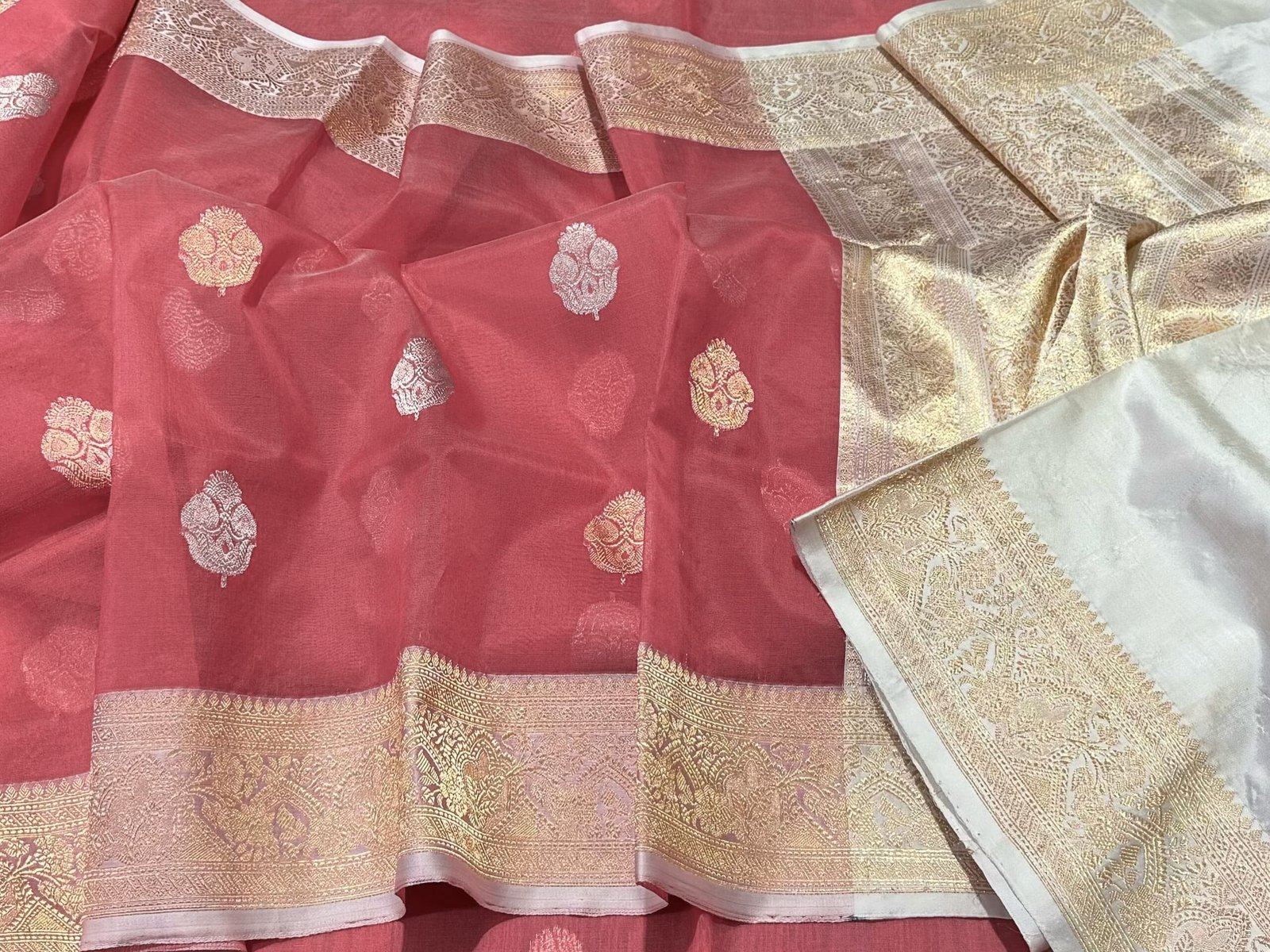 Exclusive Mashru Border Kora Banarasi Saree – A Fusion of Tradition & Texture