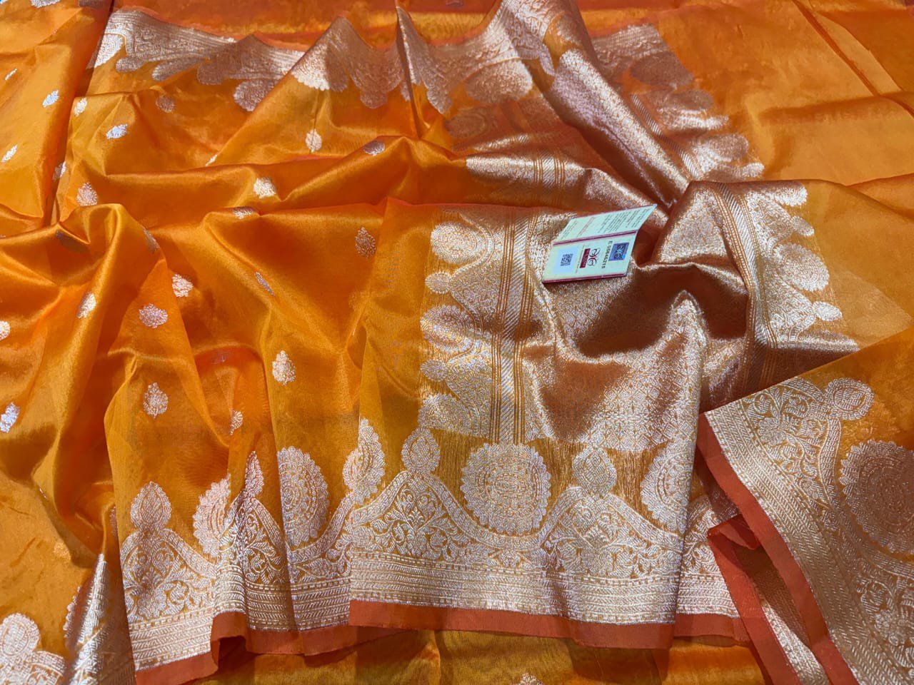Buy Exclusive Kora Banarasi Saree with Mashru silk border, rich pallu & soft fabric. Master weave design perfect for weddings and festivals.
