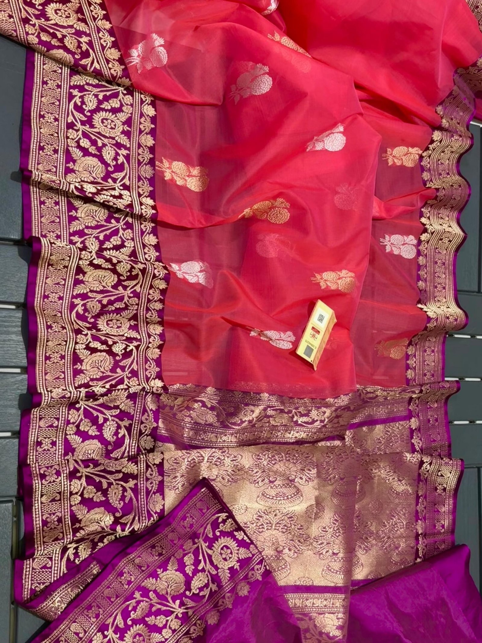 Exclusive Mashru Border Kora Banarasi Saree – A Fusion of Tradition & Texture