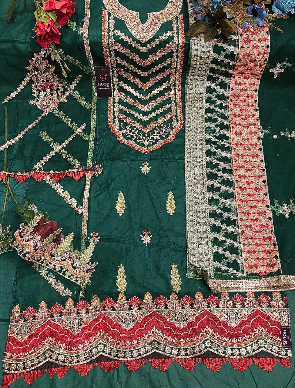 hoor tex d no 24006 pakistani dress green colour eid collection
