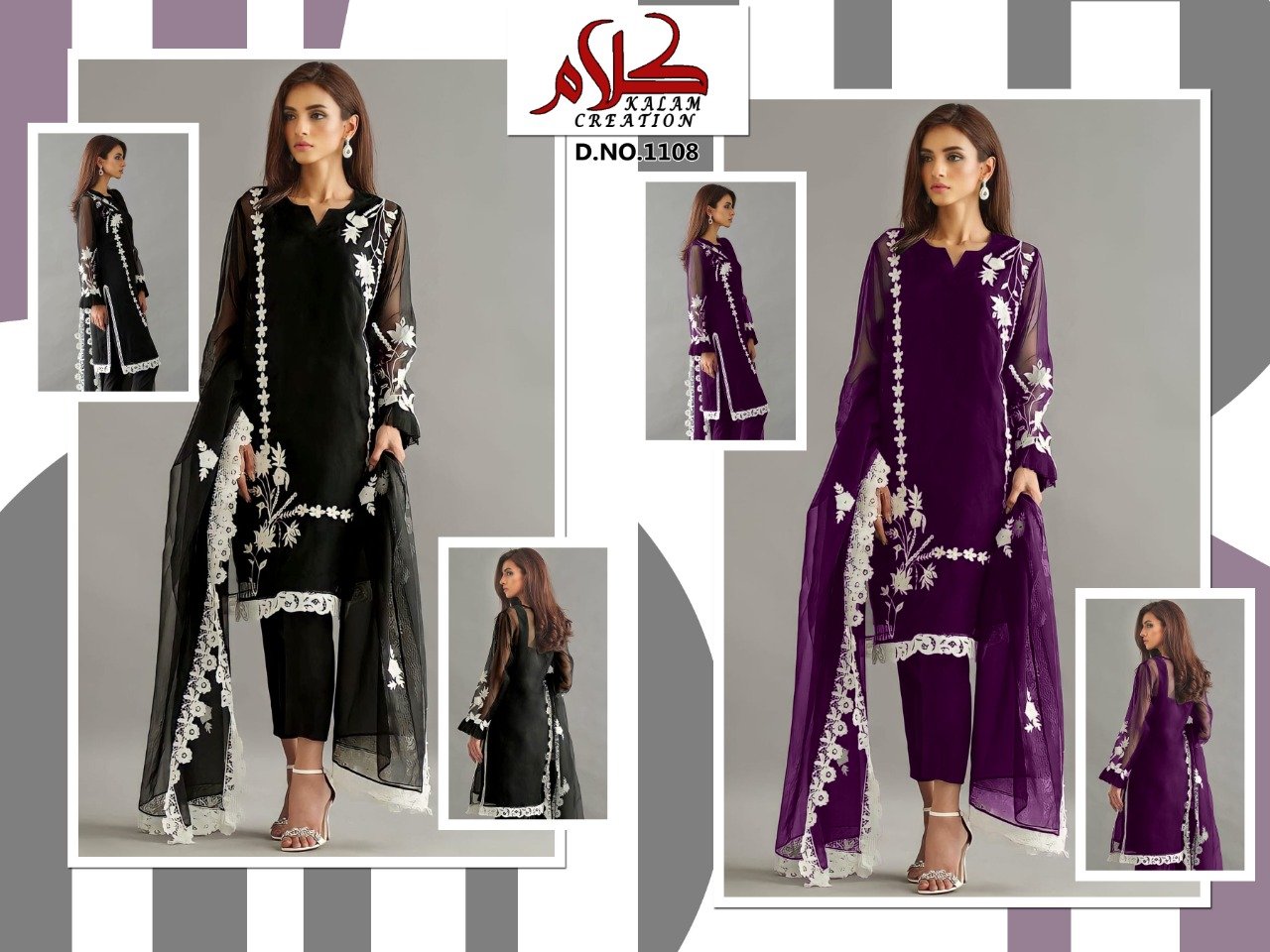 kalam creation d-1108 pakistani dress with colour purple quantity