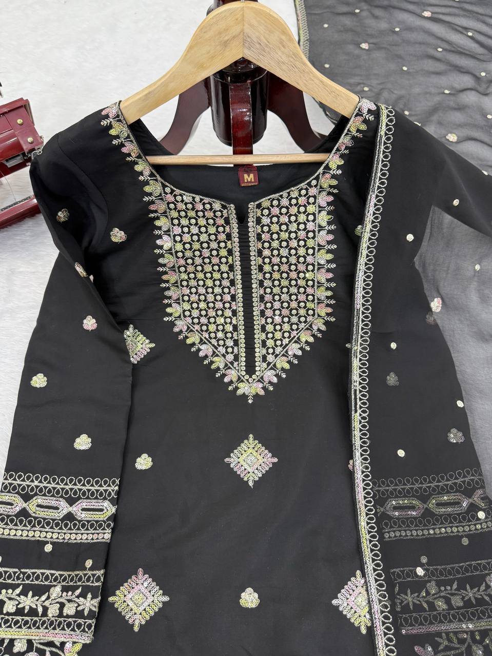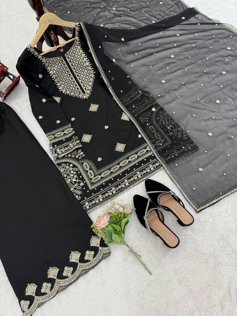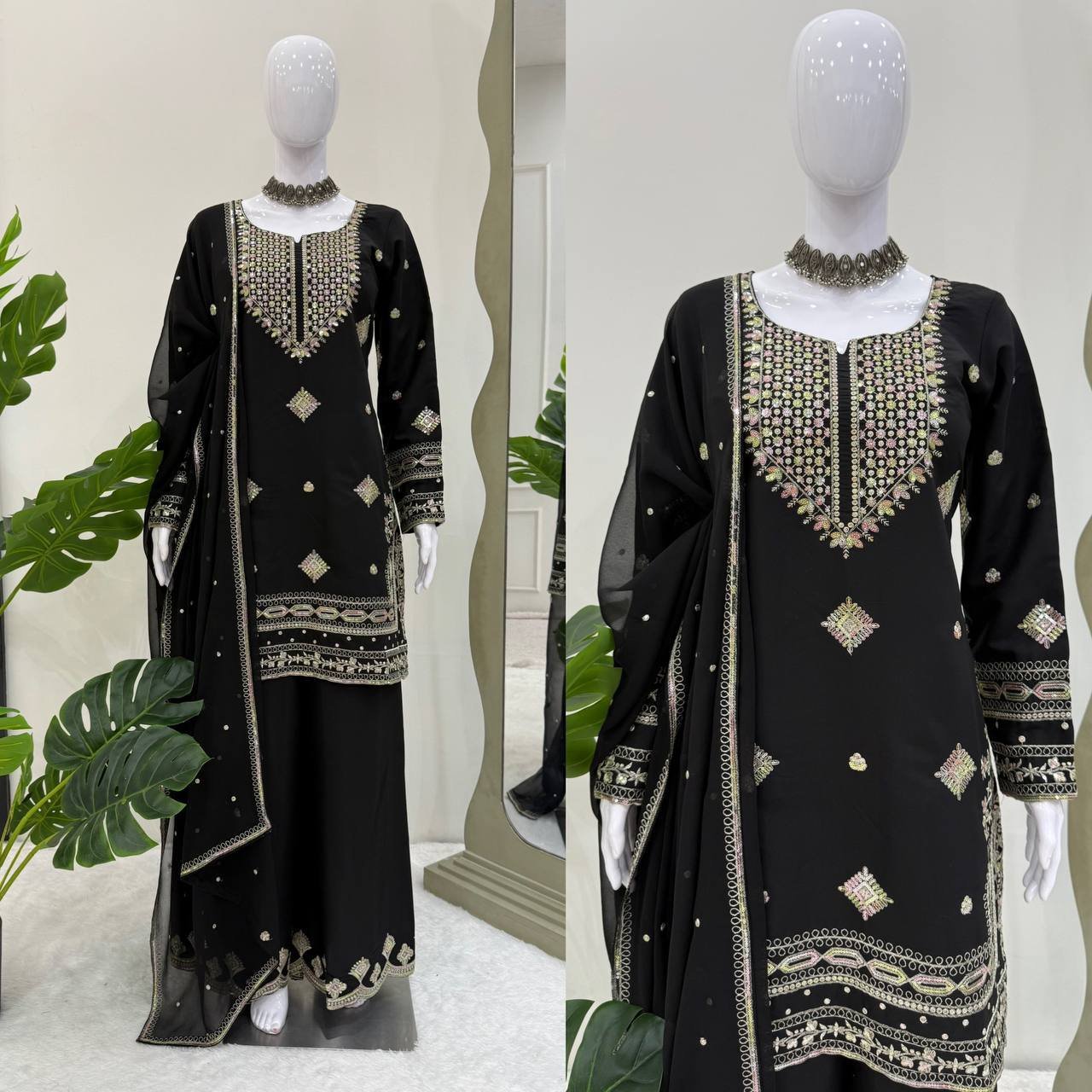 Premium Roman Silk Sharara Set with Sequins & Thread Embroidery Work