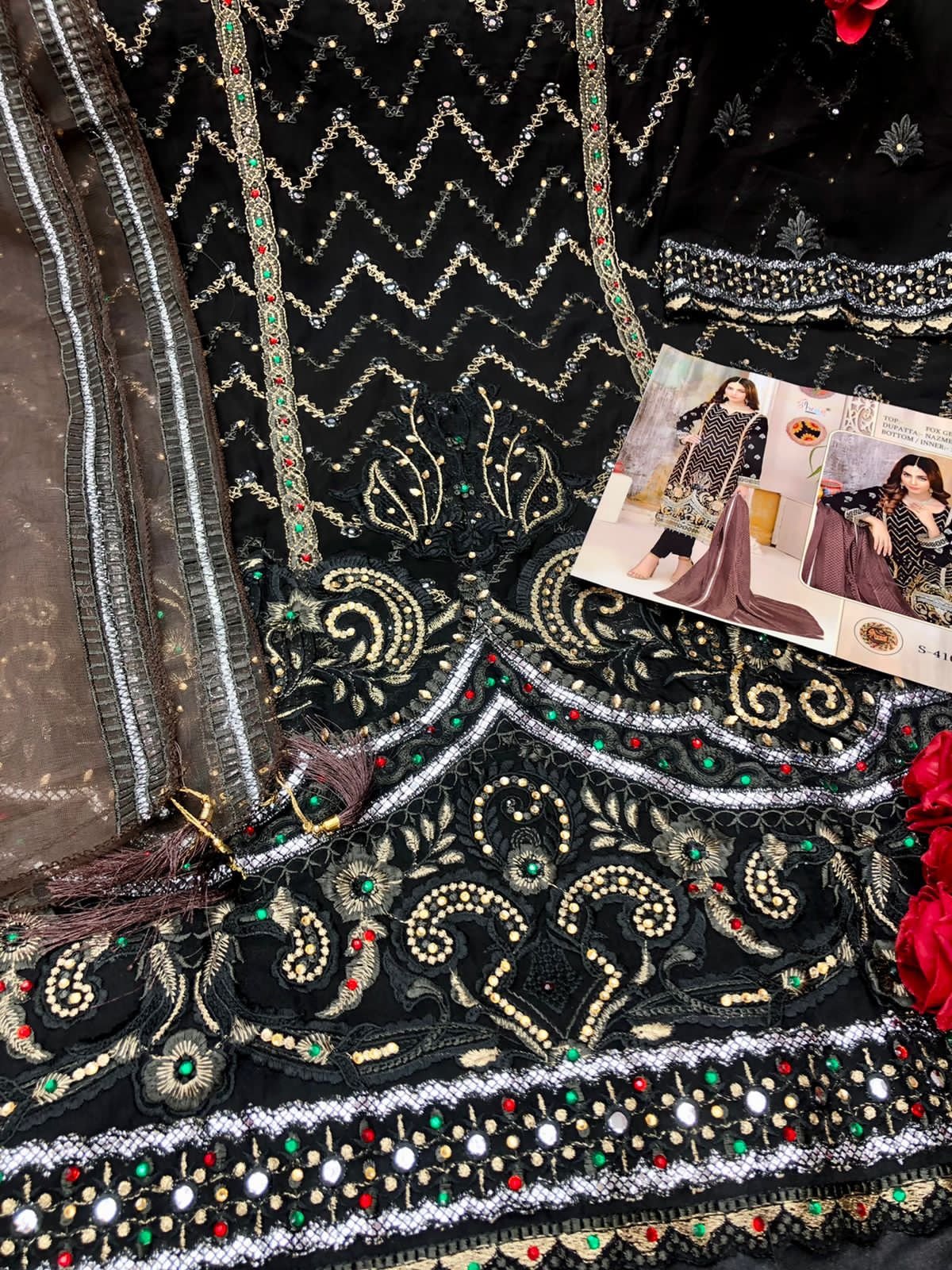 Premium Fox Georgette Embroidery Suit with Sequence Work – Heavy Net Dupatta