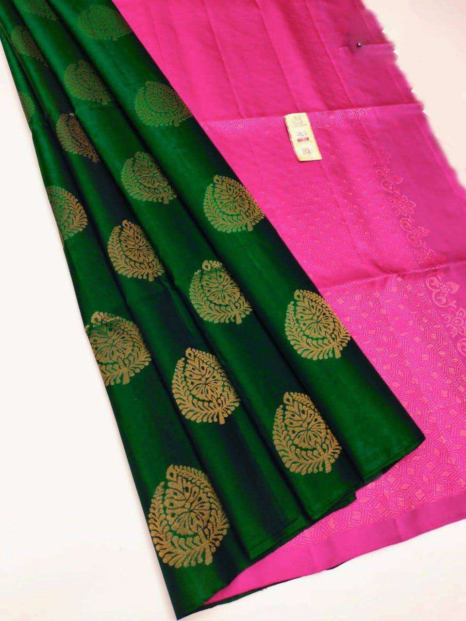 Shop festival special Soft Lichi Silk Saree with rich pallu, all-over jacquard work, and exclusive contrast blouse. Premium quality. Book now – perfect for festive occasions.