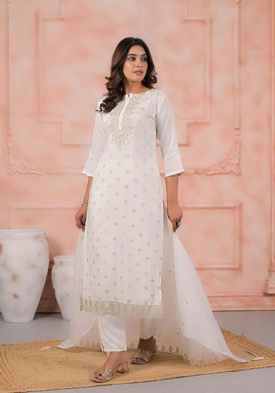 Shop premium viscose suit set with jacquard dupatta. Elegant ethnic outfit perfect for festive wear, weddings, and parties with soft fabric & rich design.”